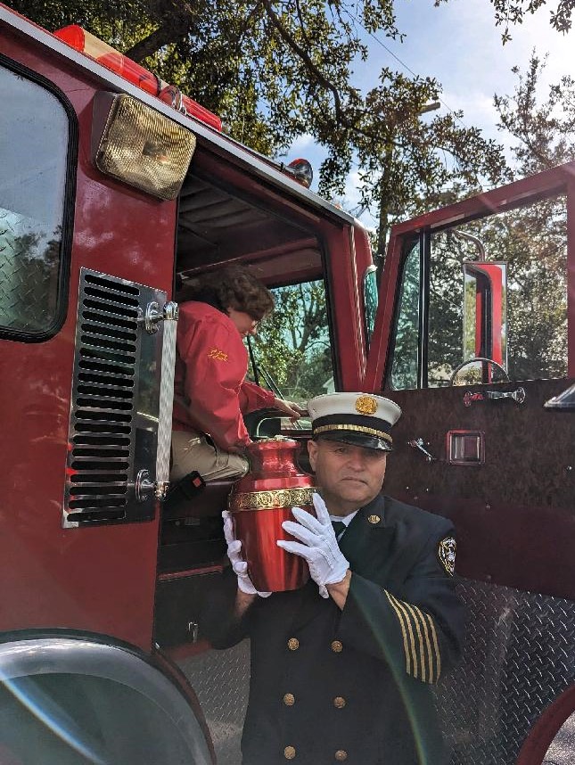 Today, we were honored to be a part of the memorial service of our brother, Captain Danny Schulken, CFD Retired, in Mt. Pleasant. After several musical selections by his former Engineer Reggie Barnes, CFD Retired, and a fitting eulogy by Asst. Chief Raymond Lloyd, CFD Retired, we transported his urn on our truck, accompanied by his grandchildren and children, to his home where he lived for over forty years. Many thanks to all who made this a special day for his family and for us. A true celebration of his life!