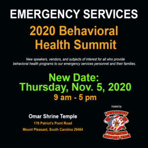 Due to the CV-19 Crisis and concerns about traveling and assembling in a large group, the 2020 Emergency Services Behavioral Health Summit has been postponed and rescheduled for November 5, 2020, in Charleston, South Carolina. We believe this postponement will give participants an opportunity to get back to work and resume some normalcy in their daily lives. The Fall of the year is a wonderful time to visit Charleston. We hope you will plan to stay overnight or through the weekend in our beautiful City. Come join us for an in-depth discussion of emergency services behavioral health programs and resources being provided for our first responders.