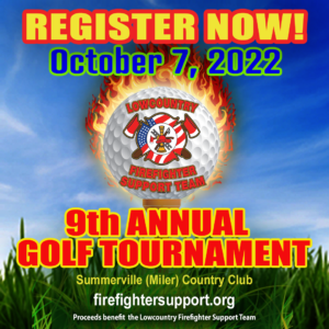 Just three weeks until our 9th Annual Golf Tournament to help the Lowcountry Firefighter, EMS, and 911 Telecommunicator Support Teams. Come join us for a great day of fellowship, golf, BBQ, prizes, and a 50/50 raffle. Dixon Golf will be on hand for several games on the course along with Starbucks, Krispy Kreme, and even the ServiceMaster ice cream truck. The weather should be amazing and we hope to see you all there.Register now at https://firefightersupport.org/shop-2/.
