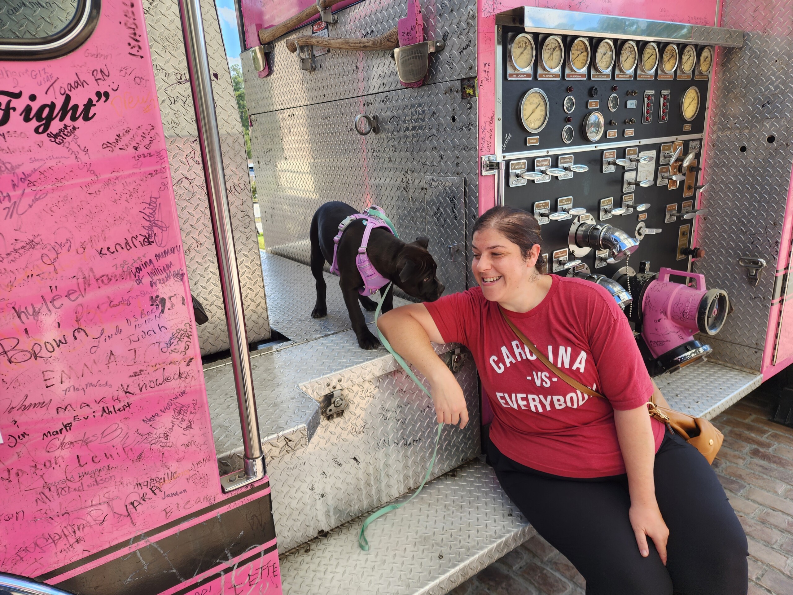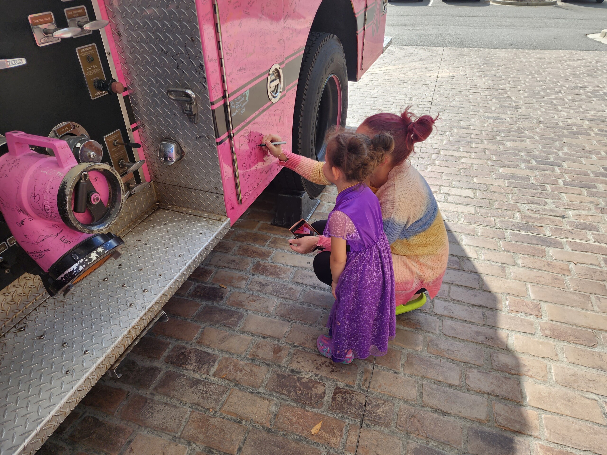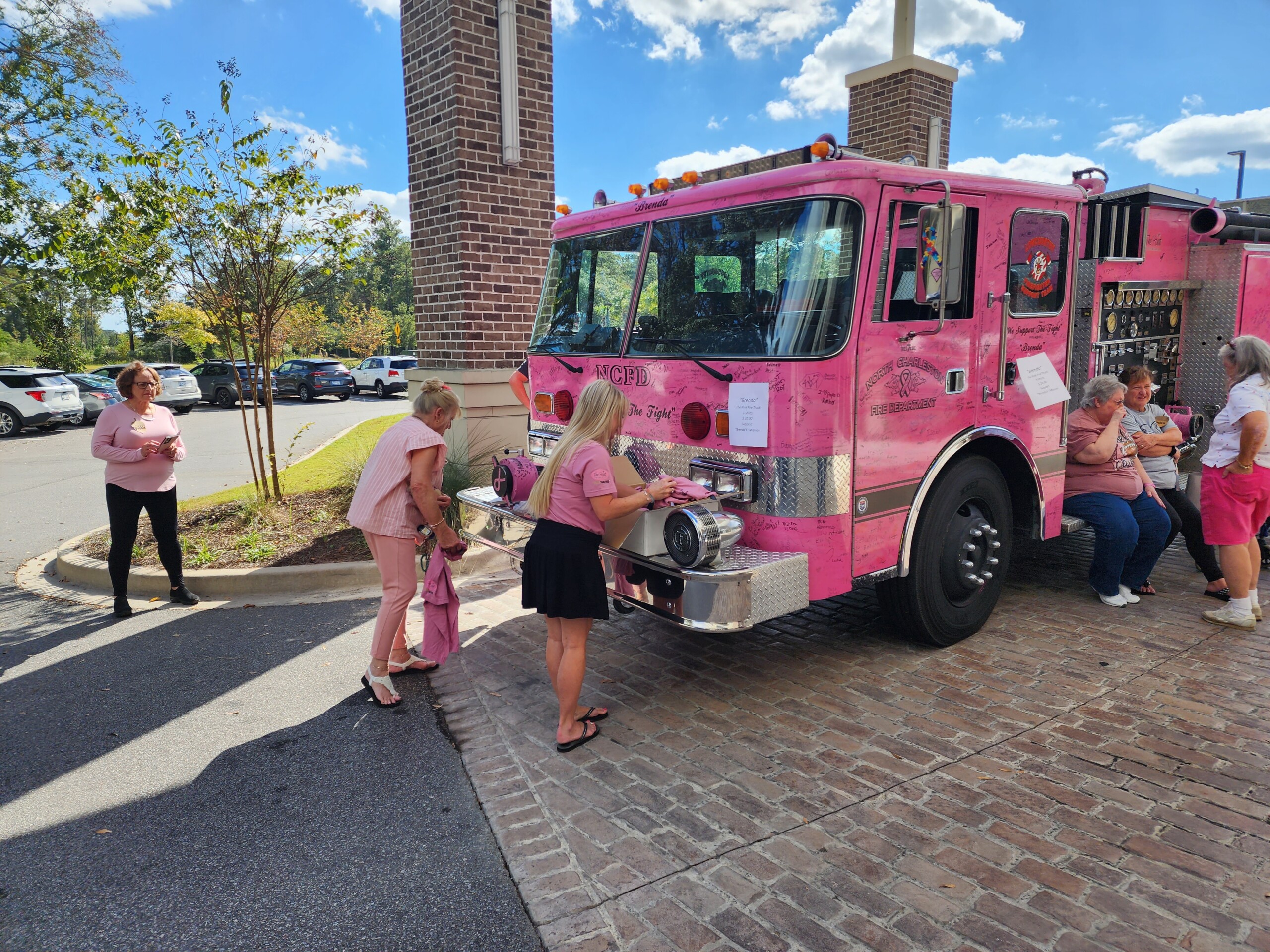 This weekend, we conclude our event schedule for observance of Cancer Awareness Month by taking our pink fire truck “Brenda” to the Hilton Hotel in Nexton for the “Crop for a Cure” that raised money for women’s cancer research. It was an amazing event with several hundred women in attendance. We gained lots of new signatures (and friends!) and messages on Brenda as participants made us feel at home.Many thanks to all of them for their dedication to the cause! We were blessed to have adults and children there along with “Tater Tot” and her Momma! We are already looking forward to next year!