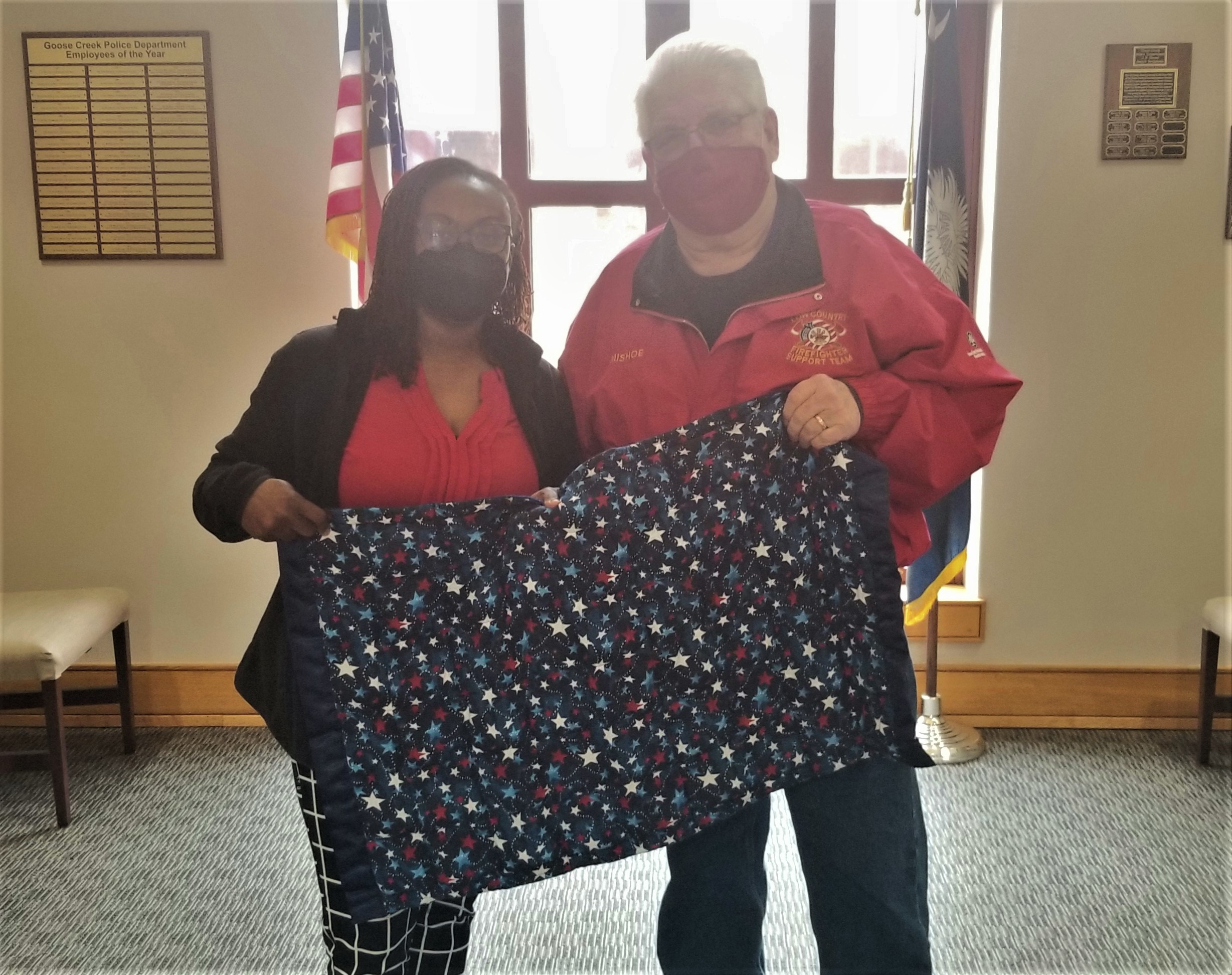 On Thursday of this week, we provided two of our weighted blankets to the Goose Creek City 911 Center. They are the thirty-fourth 911 center in the State to receive our “Operation Zzz” blankets. These blankets have proven effective in relieving anxiety and stress for our telecommunicators when they encounter particularly stressful phone calls or while handling radio communications. It is our hope to provide these to all 911 centers in our State eventually.