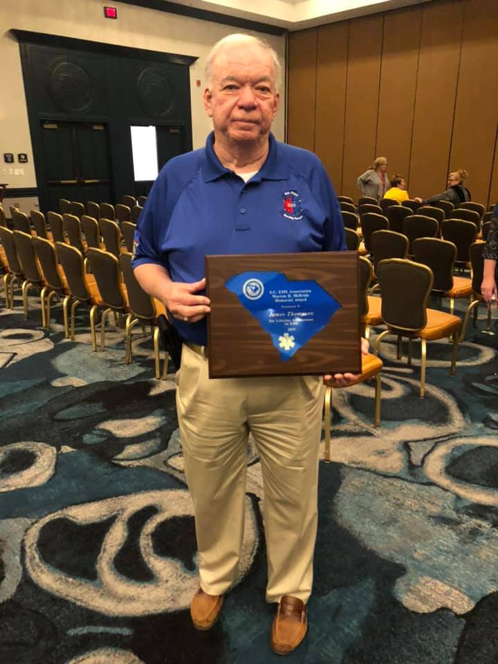 We would like to congratulate our friend Jim Thompson for receiving the Warren McBride Lifetime Achievement Award at the Annual EMS Symposium’s Awards Ceremony in Myrtle Beach on Saturday night.