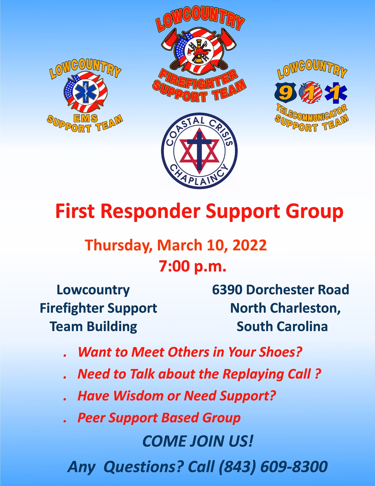 March First Responder Support Group Meeting Set for March 10th! Come join us! All are welcome! Gerald Mishoe2022-03-06T15:55:12-05:00 Share This Story, Choose Your Platform! FacebookXRedditLinkedInTumblrPinterestVkEmail