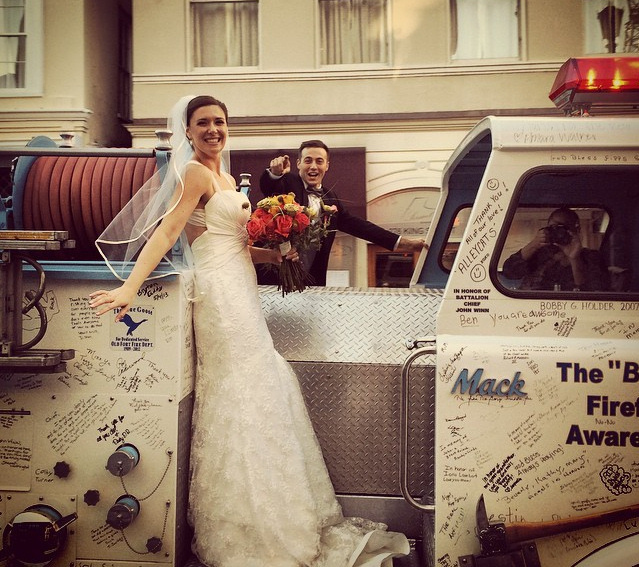 The warm temperatures the last two days have us thinking of Spring. While the weekend will shock us back to reality, we can’t help but think about the excitement of getting out to enjoy the coming warm weather. And with that comes the thoughts of love in the air and firefighter weddings! We are already booking weddings with two set in April. Part of the excitement of this Team is when we get to be a part of a couple’s big day. If you are planning a wedding and want to have a fire truck as a part of it, let us know. We have three trucks available to help you and we would be thrilled to be a part of your big day! Here are a few photos from years and weddings past.