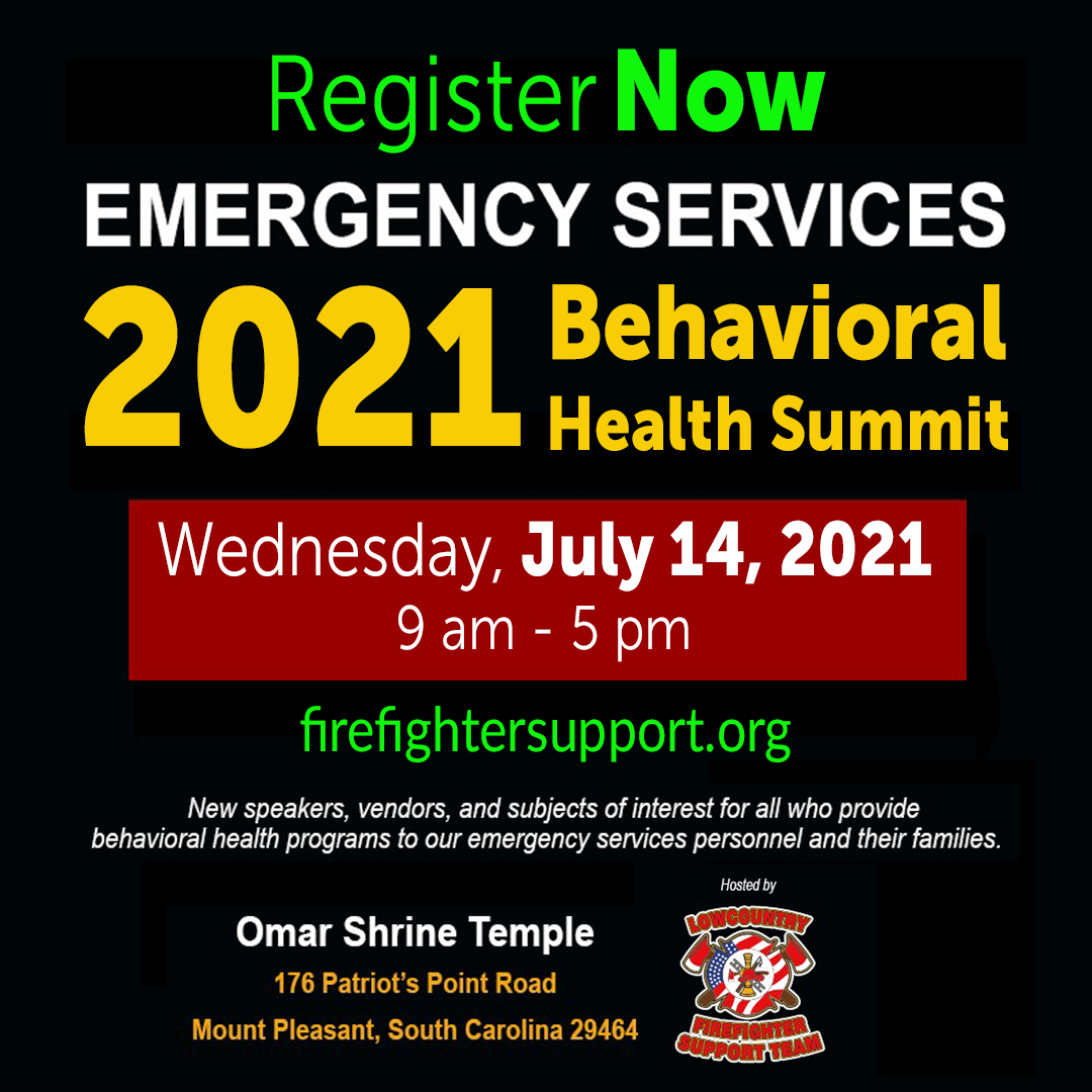 We have completed our lineup of speakers for our Emergency Services Behavioral Health Summit on July 14th. Stay tuned as we will continue to introduce them here in the coming weeks leading up to July. You don’t want to miss an opportunity to spend the day with these amazing folks!  Registration for attendees and exhibitors is now open at www.firefightersupport.org.