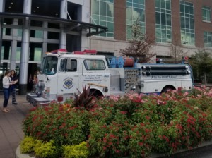 This afternoon, we visited the Motley Rice Law Firm at Patriot’s Point to assist their folks in observing Mesothelioma Day. Motley Rice represents many people, including first responders who contract mesothelioma from asbestos exposure. CFD Battalion Chief John Winn succumbed to mesothelioma in 2012 and he was represented by Motley Rice. Our “Big John” truck was restored to honor Chief Winn and to encourage firefighters to get scans as a part of their physicals to detect mesothelioma and other life-threatening diseases. It order to continue to honor his memory we took his “Big John” truck with us today to be a part of the observance.
