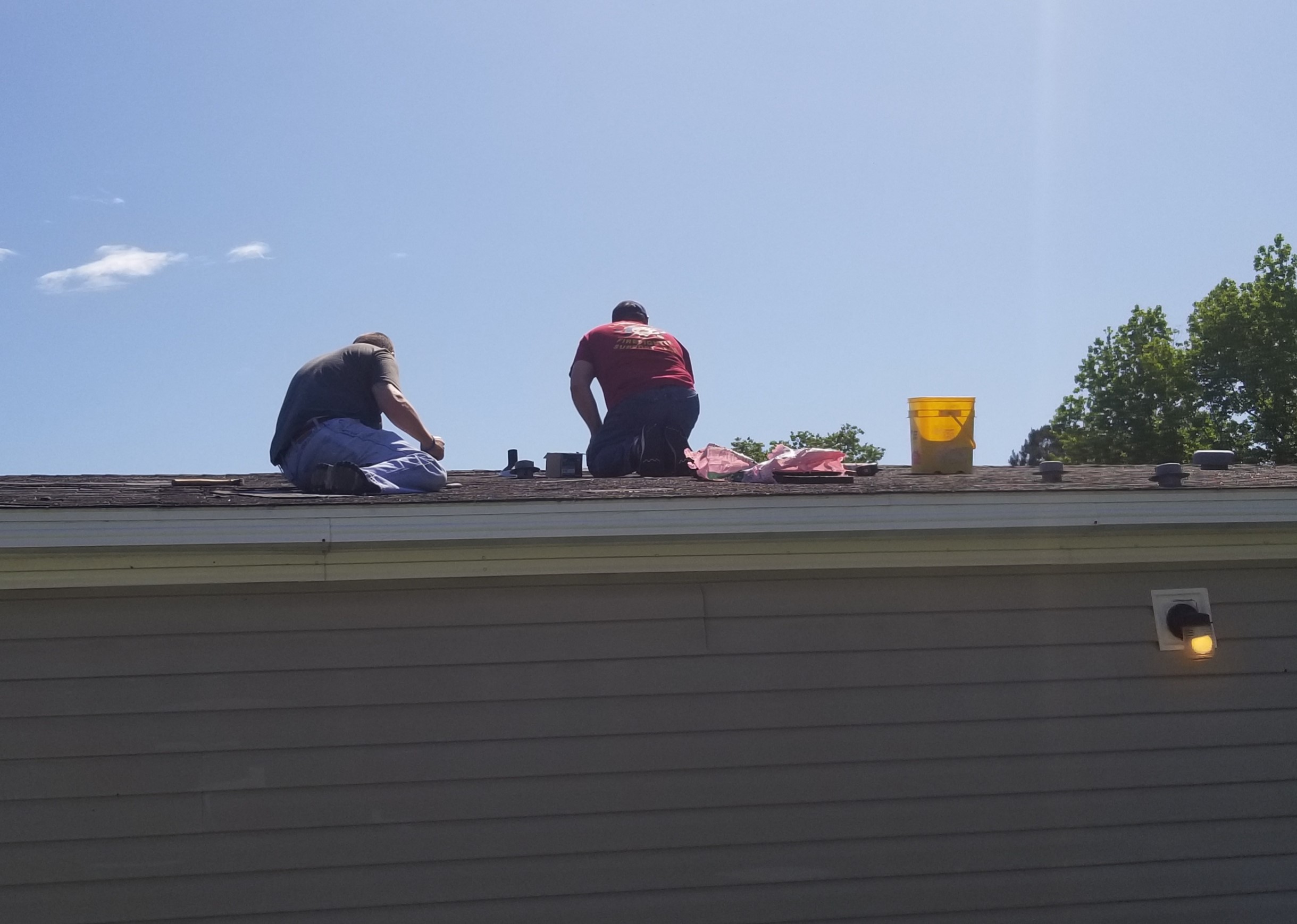 So, back to today. We helped a firefighter repair their roof after some unexpected damage. Roofing is something we certainly don’t specialize in, but our Team will always try to rise to the occasion. Hats off to Captain David Reindollar, NCFD Retired and Captain Earl Dunlap, CFD Retired as they took to the roof to take this one on. If you did not know it, you would think they both have spent a great deal of time on roofs over the years. They got some springtime sun in the process! Thanks, guys for making us proud!